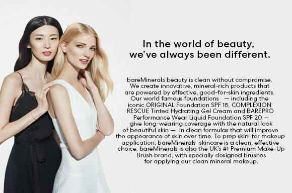 Krása bareMinerals je čistá bez kompromisů. Vytváříme inovativní produkty bohaté na minerály, které jsou poháněny účinnými ingrediencemi vhodnými pro pokožku. Naše světově proslulé nadace - včetně ikonického ORIGINÁLNÍHO Foundation Foundation SPF 15, COMPLEXION RESCUE Tónovaný hydratační gel a BAREPRO Performance Wear Liquid Foundation SPF 20 - poskytují dlouhodobé pokrytí přirozeným vzhledem krásné pokožky - v čistých vzorcích, které zlepší vzhled kůže v průběhu času. Pro přípravu pleti pro líčení je péče o pleť bareMinerals čistou a efektivní volbou. bareMinerals je také britskou značkou prémiového make-upu č. 1 se speciálně navrženými kartáči pro nanášení našeho čistého minerálního make-upu.